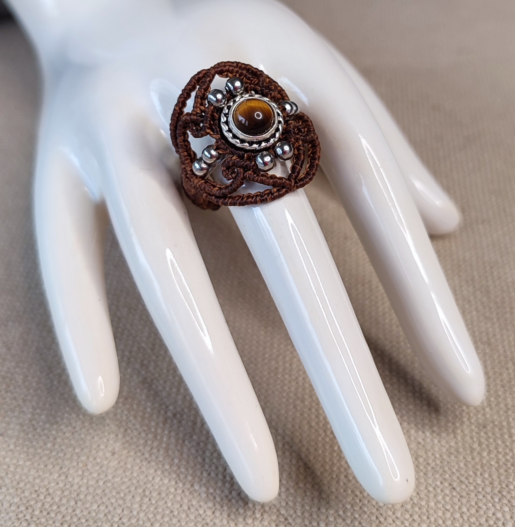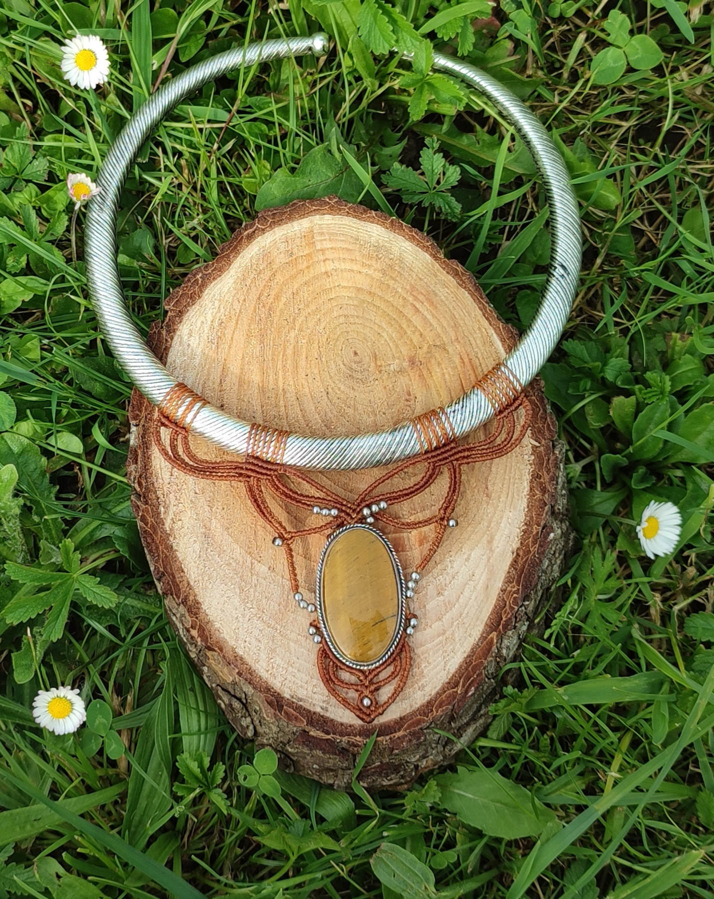 Cet œil de tigre a de très jolis reflets. Pour mettre ce joli torque c’est très simple, il vous suffit de basculer un côté vers vous et l’autre en arrière et le tour est joué.