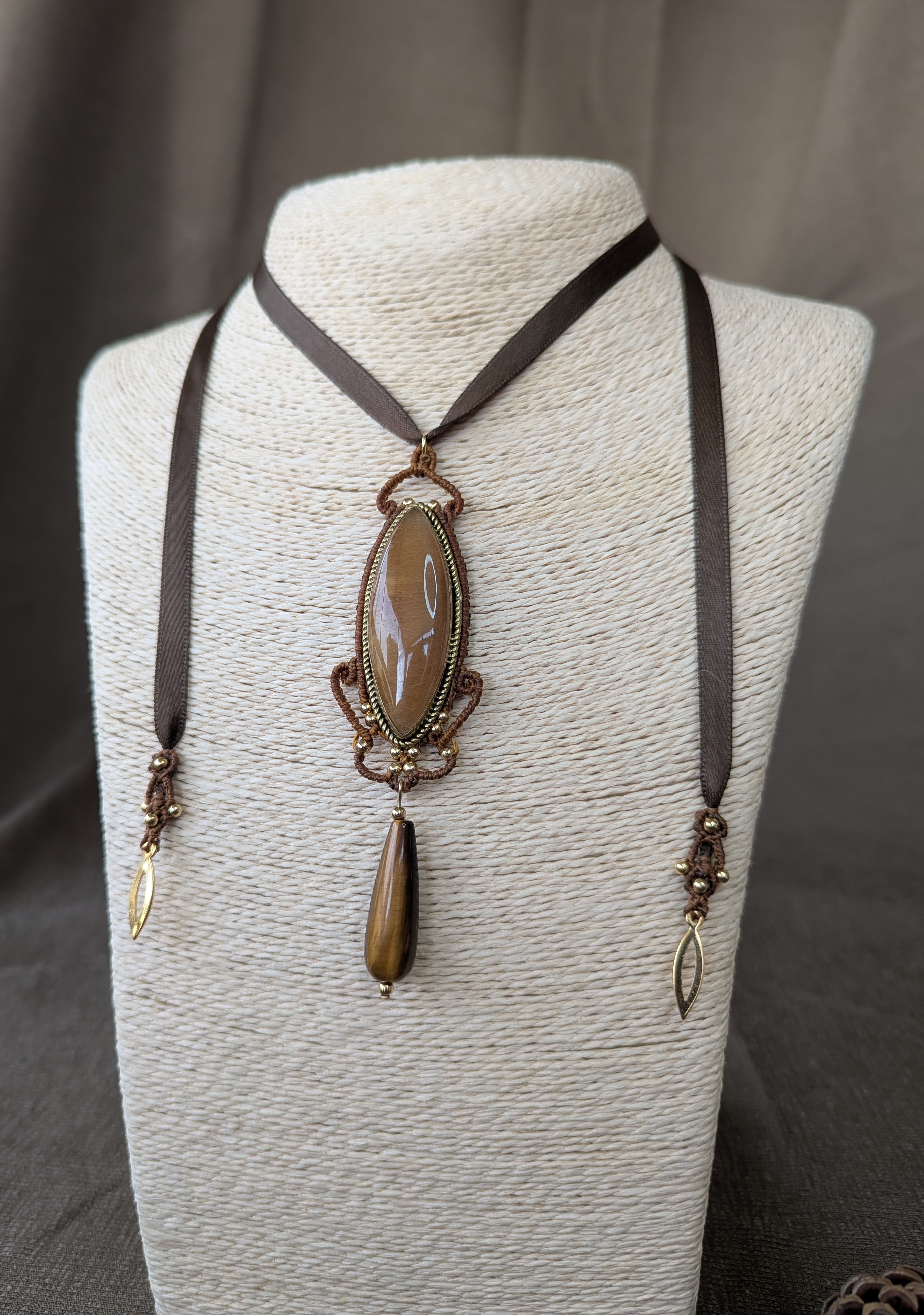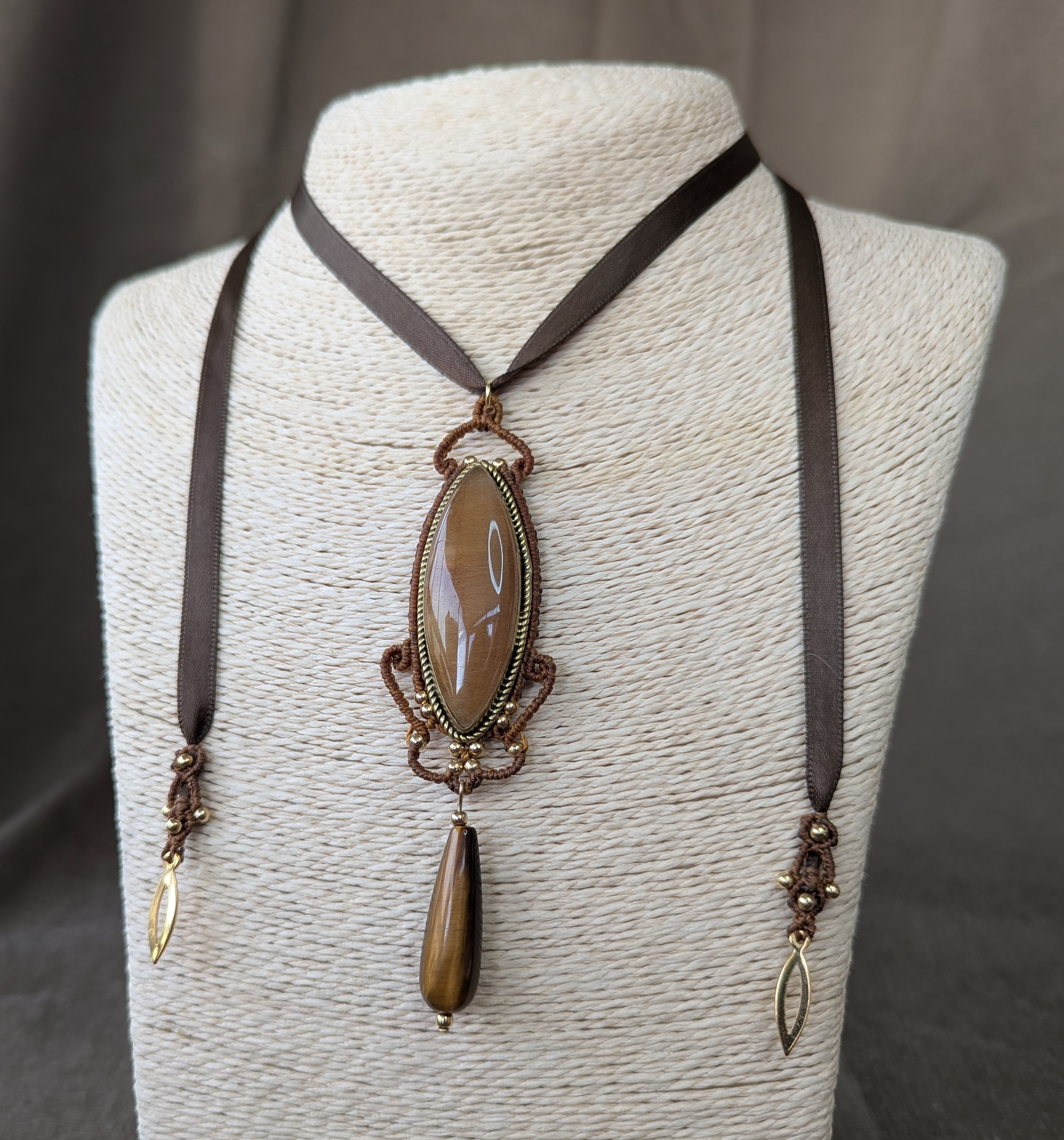 « Sautoir impérial » en oeil du tigre enrubané